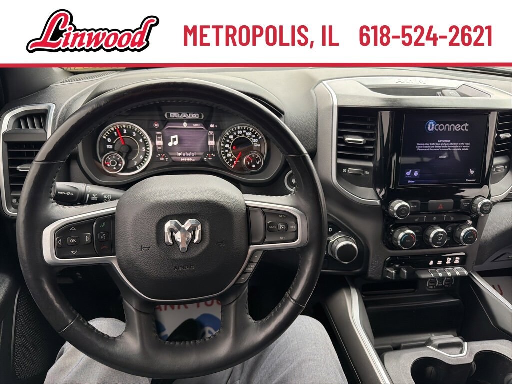 Apple CarPlay, Android Auto, Bluetooth, Backup Camera, Remote Start, 115V Auxiliary Power Outlet, 115V Auxiliary Rear Power Outlet, 2 USB Full Function/Charge Only Media Hub, 2nd Row In Floor Storage Bins, 3 Rear Seat Head Restraints, 4 Way Front Headrests, 400W Inverter, 8.4" Touchscreen Display, Air Conditioning ATC w/Dual Zone Control, Anti-Spin Differential Rear Axle, Auto-Dimming Exterior Driver Mirror, Auto-Dimming Rear-View Mirror, Big Horn Badge, Big Horn IP Badge, Big Horn Level 2 Equipment Group, Black Exterior Truck Badging, Black Headlamp Bezels, Black Interior Accents, Black Premium Power Mirrors, Body Color Door Handles, Body Color Exterior Mirrors, Body Color Front Bumper, Body Color Premium Power Mirrors, Body Color Rear Bumper w/Step Pads, Bucket Seats, Class IV Receiver Hitch, Dampened Tailgate, Deluxe Cloth Bucket Seats, Dual Exhaust w/Black Tips, Exterior Mirrors Courtesy Lamps, Exterior Mirrors w/Memory, Foam Bottle Insert (Door Trim Panel), Front Seat Back Map Pockets, Full Length Floor Console, Glove Box Lamp, GPS Navigation, Grille Surround 1 Black Texture 2 Black, Heated Front Seats, Heated Steering Wheel, Manual Adjust 4-Way Front Passenger Seat, Night Edition, ParkSense Front/Rear Park Assist w/Stop, ParkView Rear Back-Up Camera, Power 4-Way Driver Lumbar Adjust, Power 8-Way Driver Seat, Power Adjustable Pedals, Power-Folding Mirrors, Quick Order Package 27Z Big Horn, Radio: Uconnect 4 w/8.4" Display, Rear 60/40 Folding Seat, Rear Dome w/On/Off Switch Lamp, Rear Power Sliding Window, Rear Window Defroster, Security Alarm, SiriusXM Satellite Radio, Speed control, Sun Visors w/Illuminated Vanity Mirrors, Trailer Brake Control, Universal Garage Door Opener, Wheels: 20" x 9.0" Premium Paint/Polished.