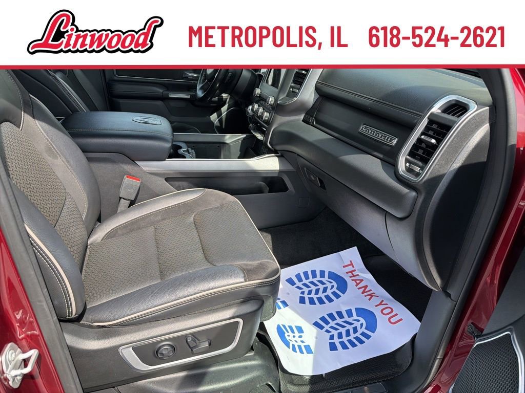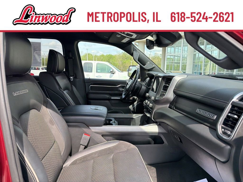Apple CarPlay, Android Auto, Leather Seats, Navigation System, Bluetooth, Backup Camera, Remote Start, Anti-Spin Differential Rear Axle, Auto Dimming Exterior Passenger Mirror, Auto High Beam Headlamp Control, Black Interior Accents, Blind Spot & Cross Path Detection, Body Color Door Handles, Body Color Exterior Mirrors, Body Color Front Bumper, Body Color Premium Power Mirrors, Body Color Rear Bumper w/Step Pads, Foam Bottle Insert (Door Trim Panel), Fully automatic headlights, Garage door transmitter, Grille Surround 3 Body Color Tex 2 Black, Heated Front Seats, Heated Steering Wheel, Laramie Level 1 Equipment Group (DISC), ParkSense Front/Rear Park Assist w/Stop, Quick Order Package 25H Laramie, Rain Sensitive Windshield Wipers, Rear 60/40 Folding Split Recline Seat, Remote Tailgate Release, Speed control, Sport Appearance Package, Sport Decal, Sport Performance Hood, Tailgate Ajar Warning Lamp, Ventilated Front Seats, Wheels: 20" x 9" Premium Painted w/Inserts.